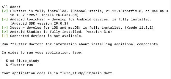 flutter create fluro_study让我们进入项目目录,并且用IDE中打开它 ,我这里用的Android studio ,你也可以用Vs Code。