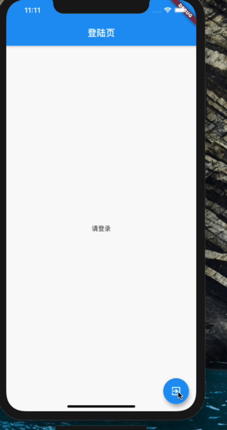 }目前,我们还无法进入首页,因为没有使用路由,从功能上看,我们希望从登陆页面floatingActionButton 转入首页。