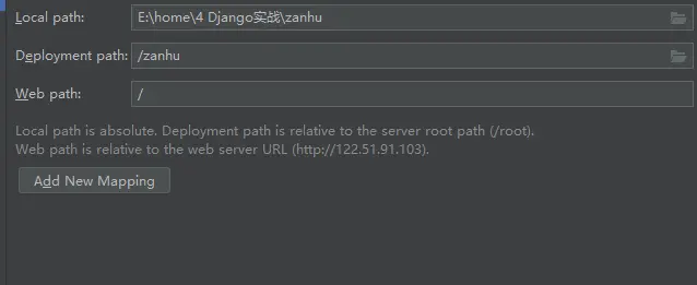 环境路径复制过来,选择本地项目文件夹和远程项目文件夹