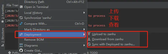 右键点击项目文件夹,可以看到远程连接的服务器代码