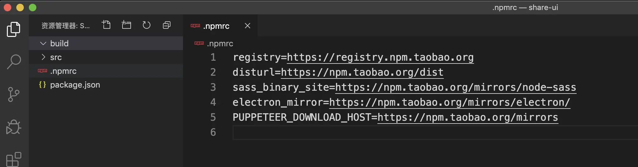 - 创建.npmrc文件,文件内容如下