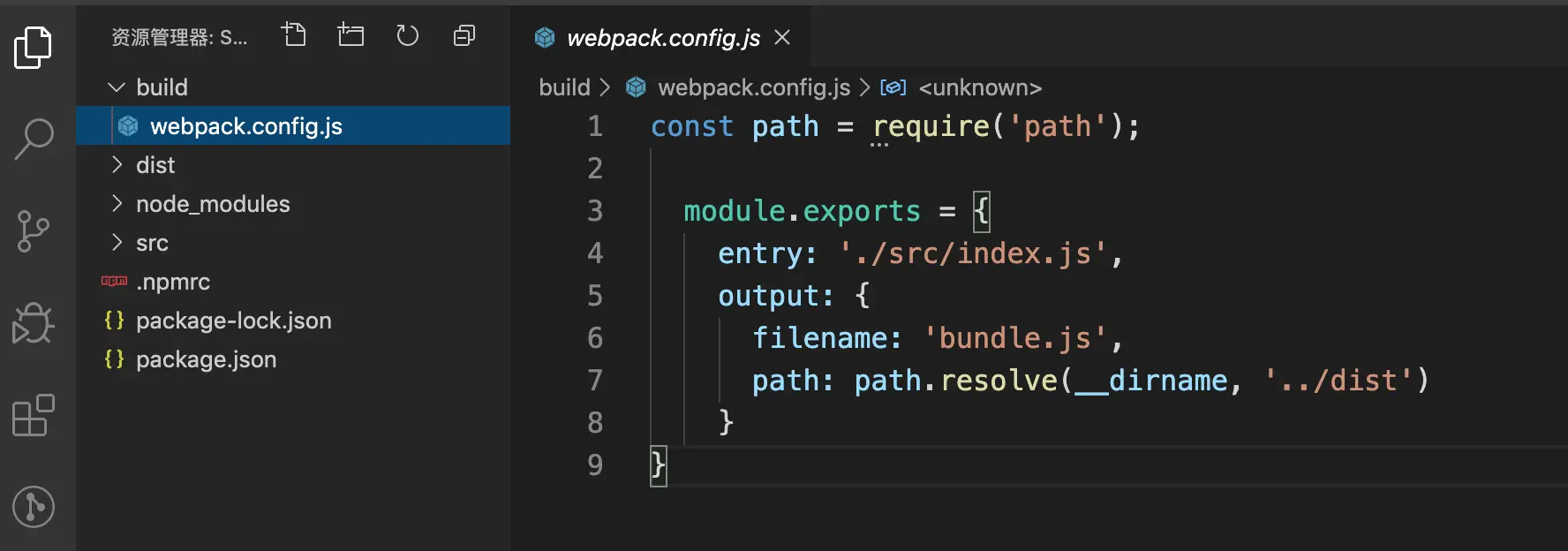 3.在build文件里创建一个文件 webpack.config.js