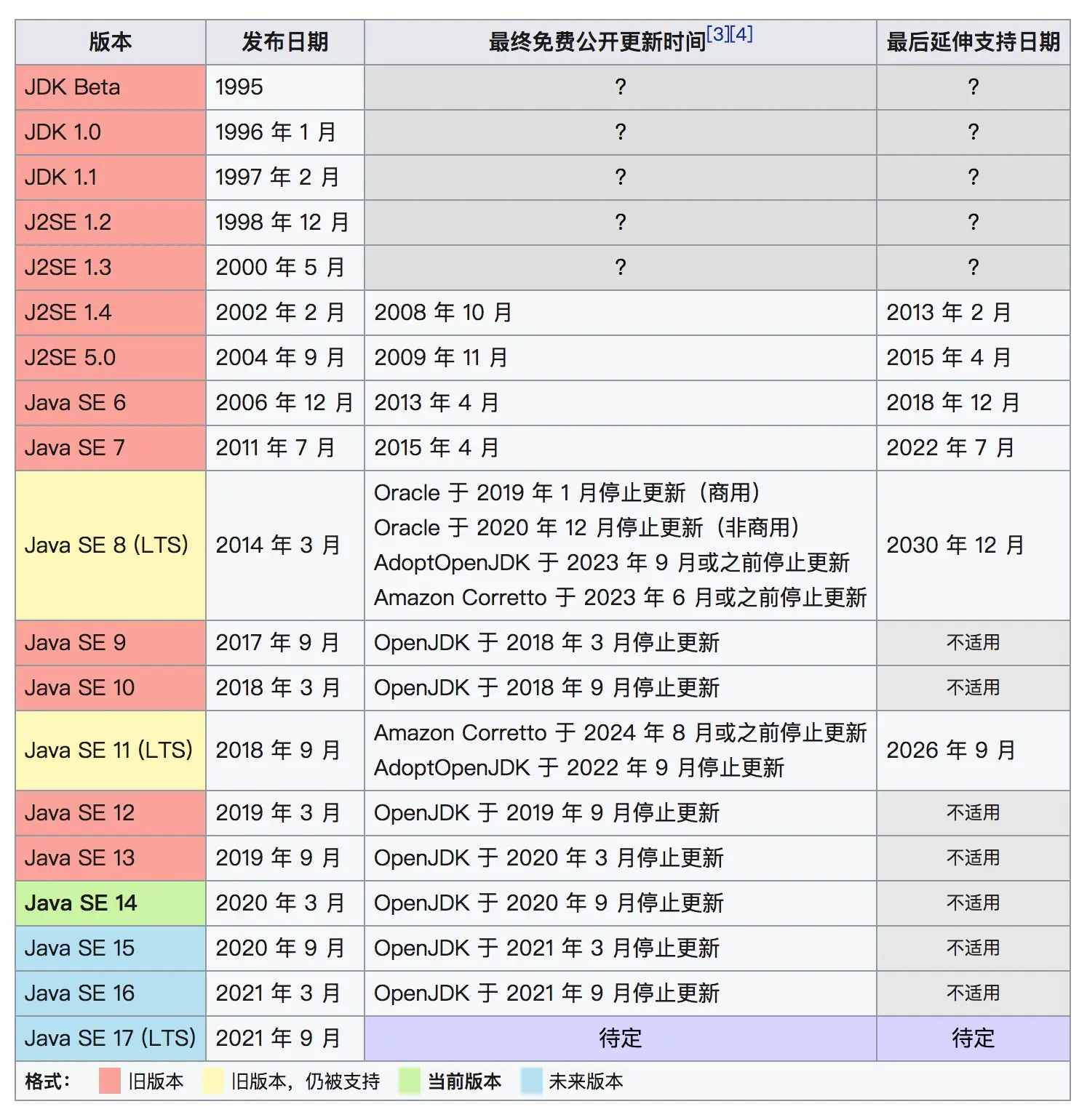 Java 8 与 Java 11 为当前提供支持的LTS(长期支持)版本;