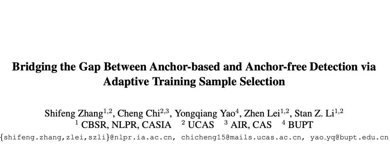 论文: Bridging the Gap Between Anchor-based and Anchor-free Detection via Adaptive Training Sample Selection