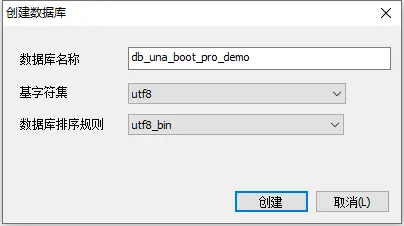 如果是第一次启动并访问尤娜博客系统,请在MySQL数据库管理系统中创建一个空的数据库,该数据库在的名称在初始化博客时需要使用。如本次演示所使用的db_una_boot_pro_demo.