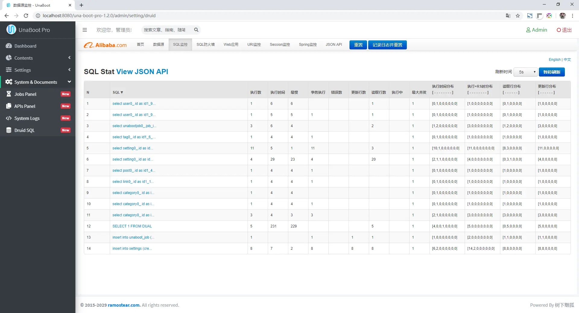 系统管理主要时针对尤娜博客的系统级别的管理,包括定时任务管理,API管理,系统实时日志管理和Druid监控。