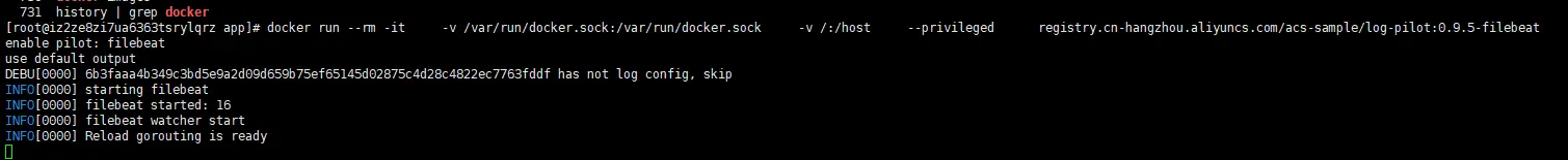 docker run --rm -it -v /var/run/docker.sock:/var/run/docker.sock -v /:/host --privileged registry.cn-hangzhou.aliyuncs.com/acs-sample/log-pilot:0.9.5-filebeat