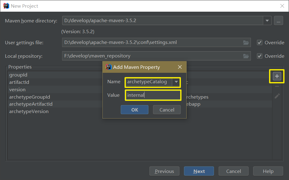 - internal:从 maven-archetype-plugin 内置的 archetypeCatalog 文件获取