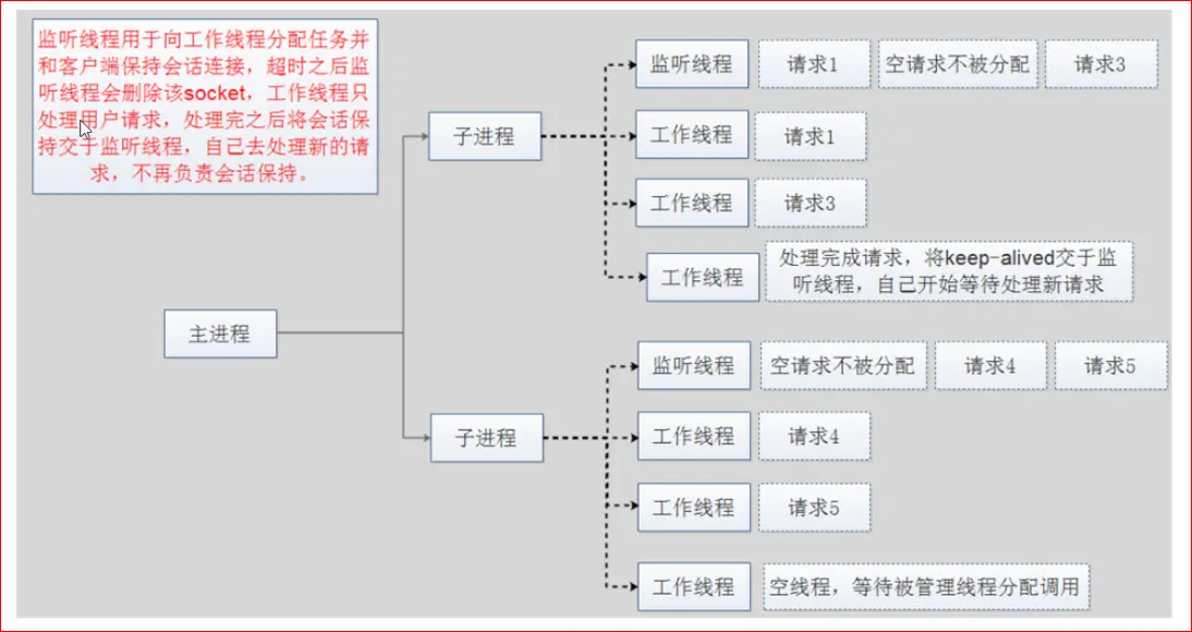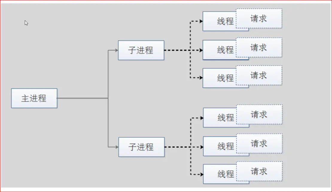 # nginx只开一个进程,里面只有一个线程,但是一个线程就可以响应多个请求,采用的是复用I/O逻辑
