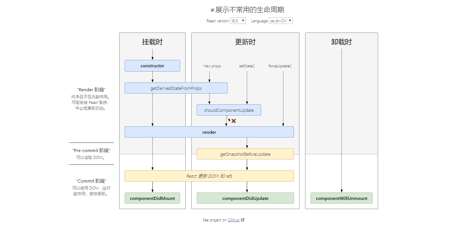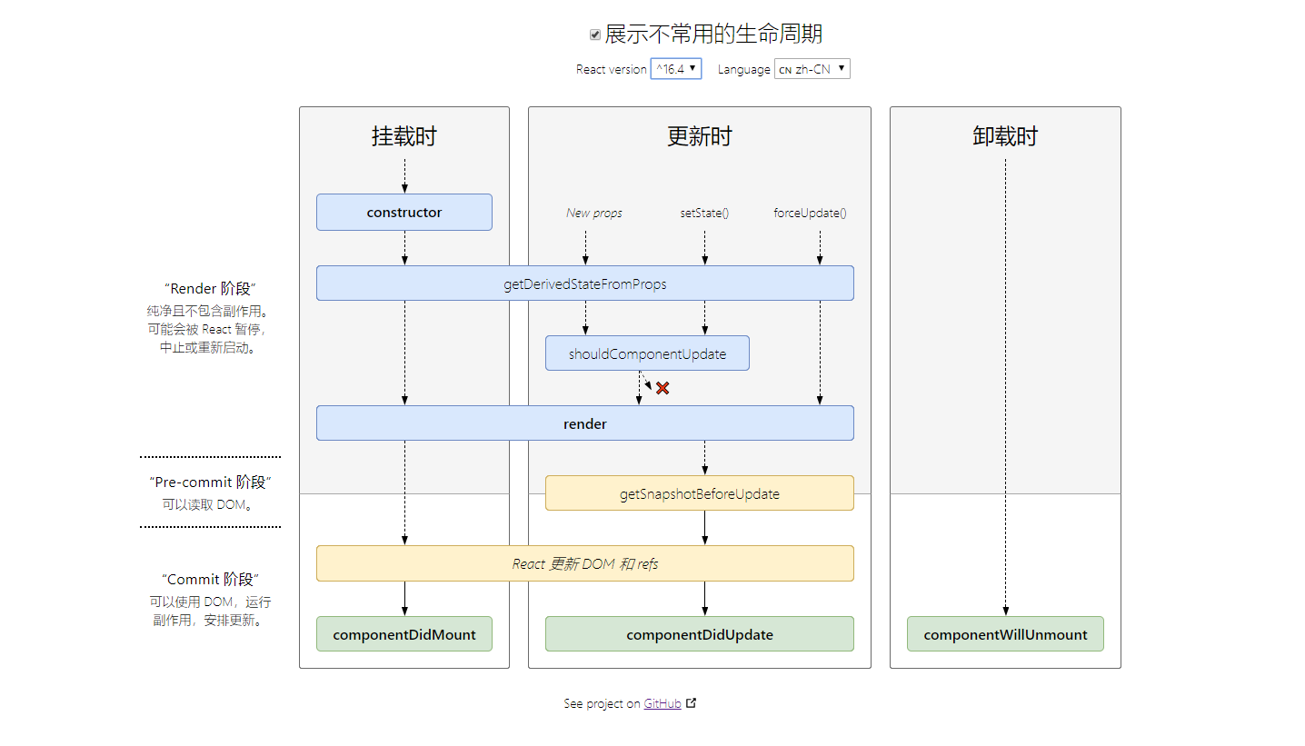我估计目前大多数人用的React版本应该都是16.4及以后的了,所以我们关注16.4版本后的生命周期钩子函数。