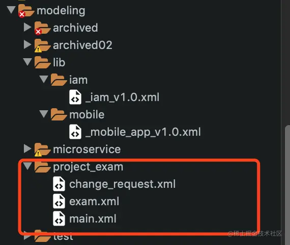 - 项目模型, 这里是 exam.xml. 并在这里做了一些简单的修改。