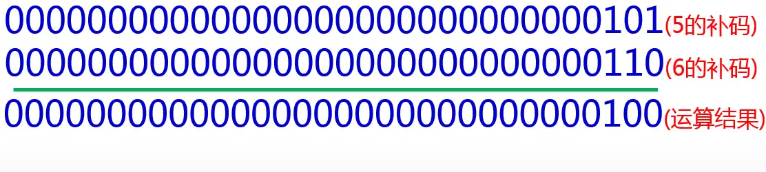 运算过程中,首先把5和6这两个数字转换为补码,之后还要把这两个数字按位对齐,然后一一把两个相应的二进制位上的数字进行按位与运算,运算得到的二进制串就是最终的结果。按照补码反向转换为十进制数字的规则,可以计算出5&6的运算结果是4。在这里要提醒大家一句:进行位运算的时候,最左边的符号位也是要参与运算的。