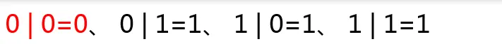 按位或运算符的写法是一个”|”符号,与”不短路的逻辑或运算符”写法相同,它的运算规则也很简单,如下图所示: