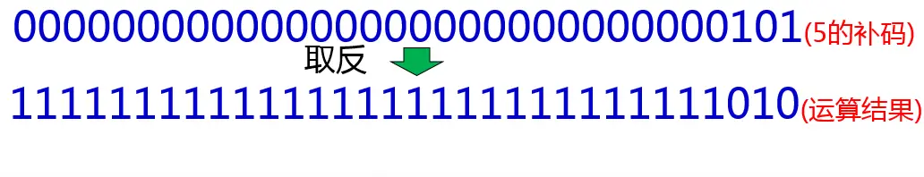 按位取反运算符写法是”~”,它的运算规则是:对每个二进制位进行取反操作,所谓取反就是原来二进制位上如果是0,那么就变成1,反之,如果原来二进制位上是1,那么就变为0。取反运算符是一个单目运算符,所以只需要一个操作数就可以了。我们以数字5为例讲解按位取反的运算过程: