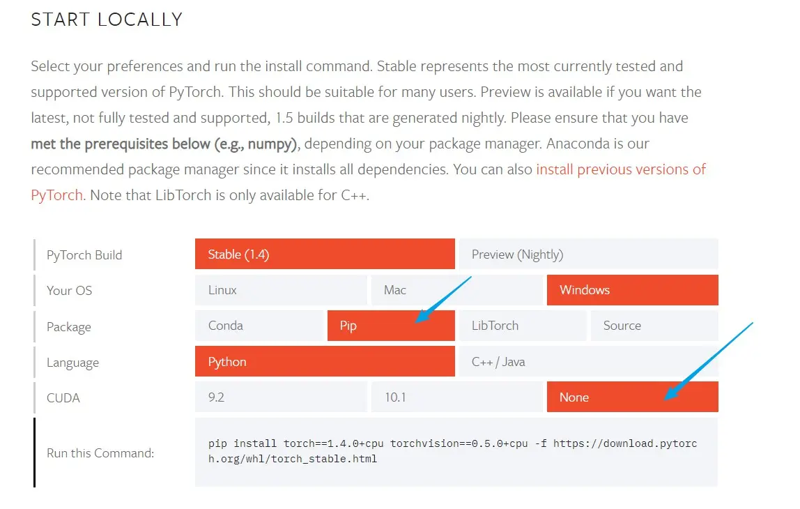 pip install torch==1.4.0+cpu torchvision==0.5.0+cpu -f https://download.pytorch.org/whl/torch_stable.html