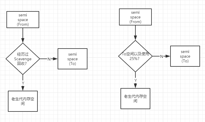 - 新生代:存放一些比较小而且存放时间比较少的变量,最开始的时候,新生代的变两个会全部放在(From)这个空间内,当我们 时,新生代内存需要回收时,会把还活着的变量复制到(To)空间内,把(From)空间内的内容全部清空,这样做的目的是用空间来换时间,总是有一半的空间是空置的