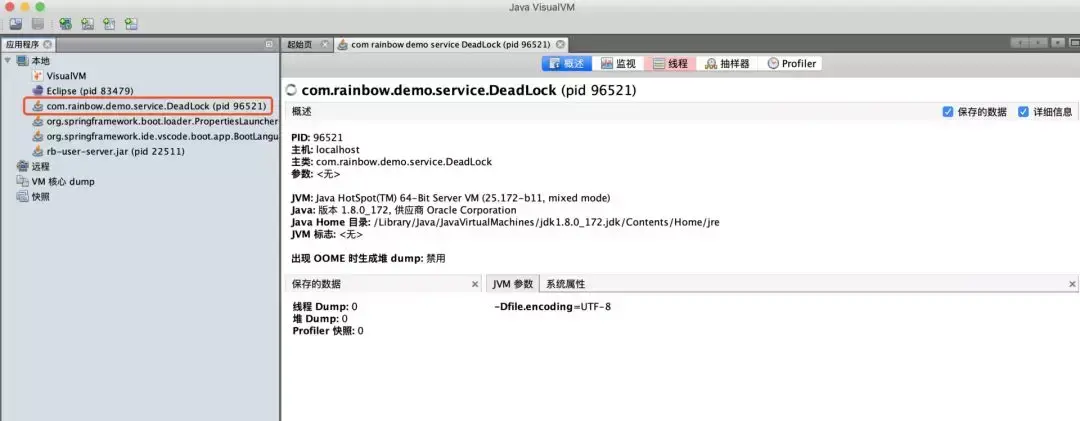 $ jvisualvm切换到“线程”窗口