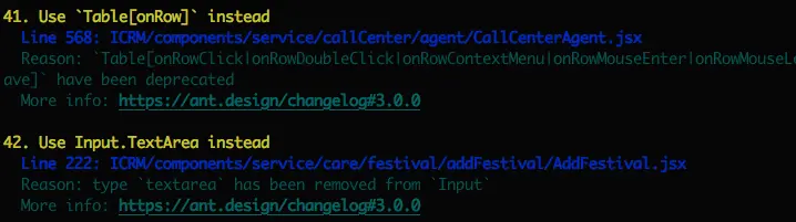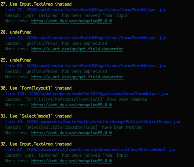 antd-migration-helper 代码检查情况片段