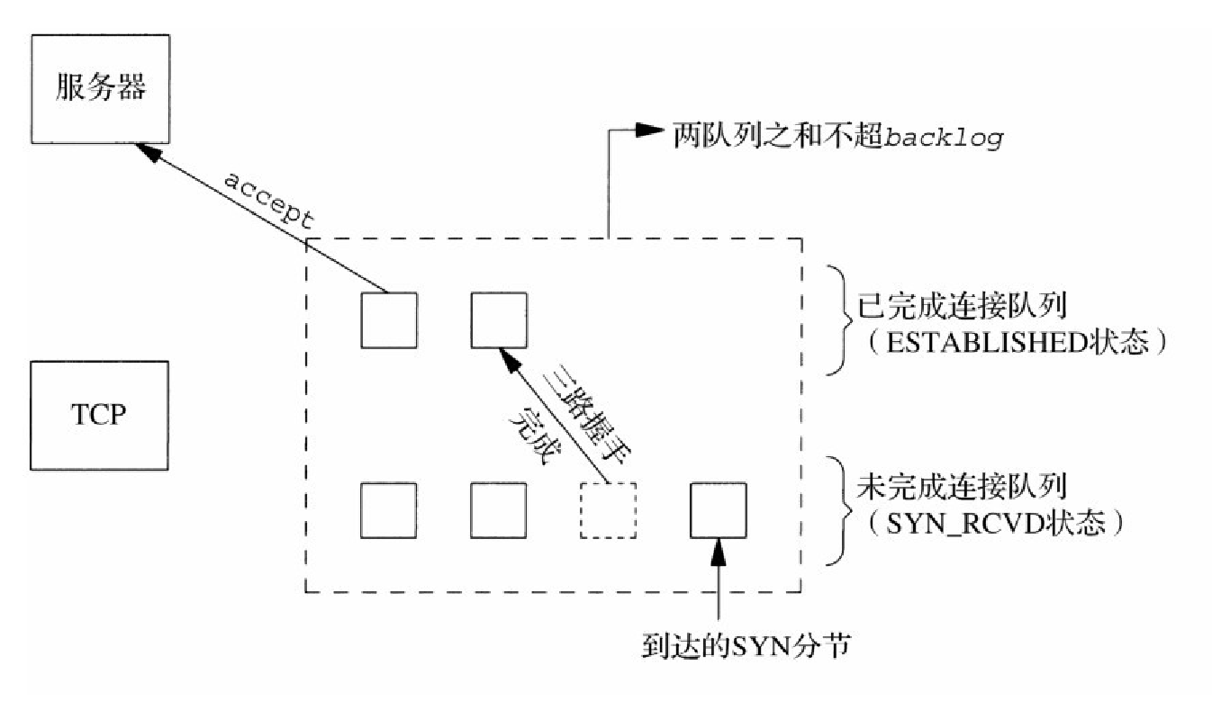 监听套接字维护着一个连接队列,主要用于提供给Accept()函数去处理已完成三次握手的套接字的请求;
