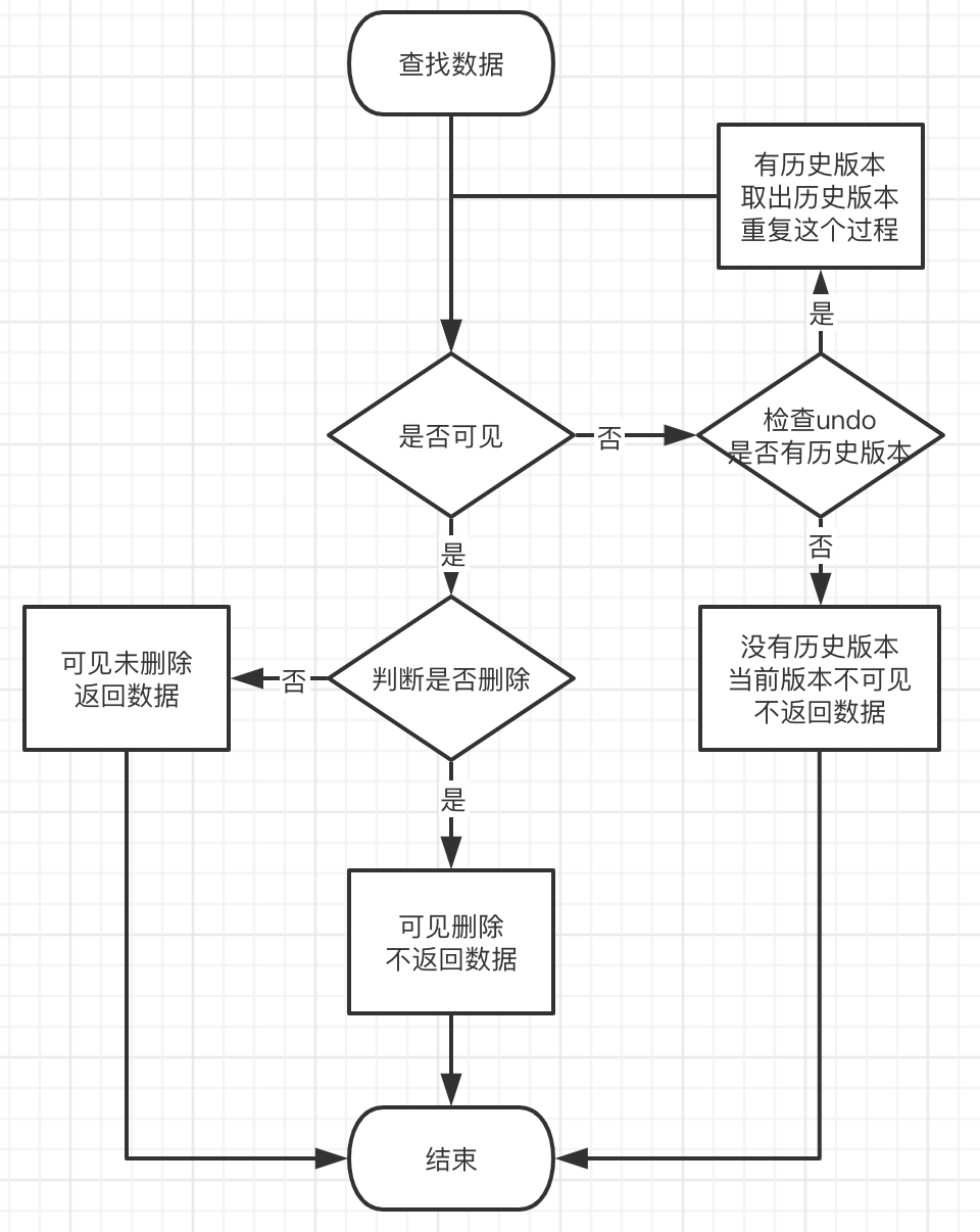 - 如果不可见,根据 DATA_ROLL_PTR 判断是否有历史版本,没有则结束,如果有则取出历史版本,重新执行这个流程,直到找到可见数据或者检查完所有历史版本