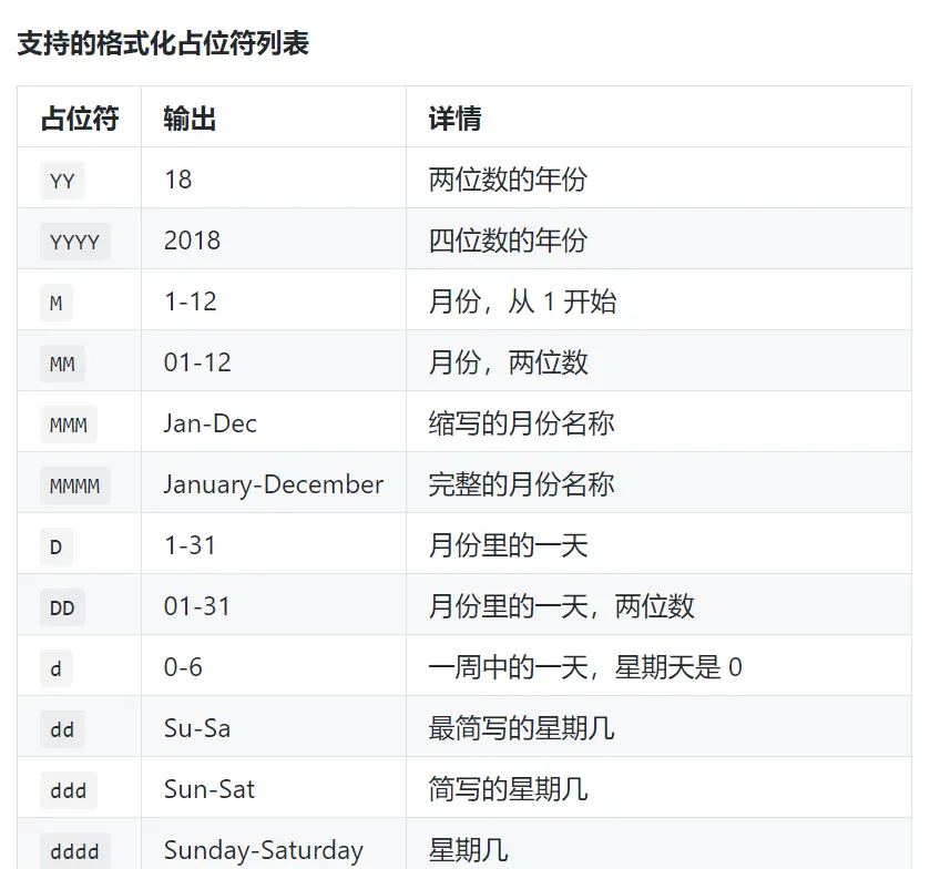.format根据传入的占位符返回格式化后的日期。