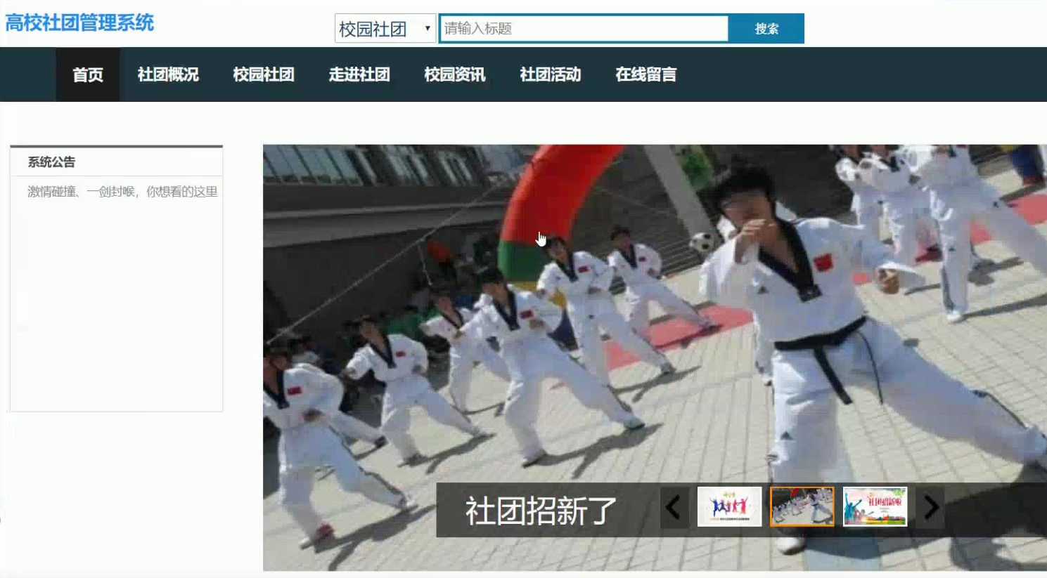 具体在系统设计上,采用了B/S的结构,同时,也使用java技术在动态页面上进行了设计,后台上采用Mysql数据库,是一个非常优秀的高校社团管理系统。
