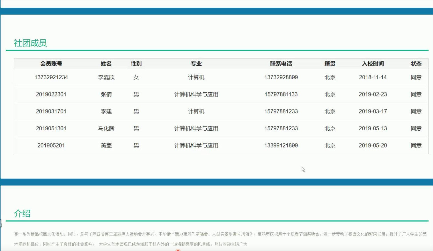 本文以java为开发技术,实现了一个高校社团管理系统。高校社团管理系统的主要实现功能包括:学生:社团概况、校园社团、走进社团、校园资讯、社团活动、在线留言,管理员:网站设置、会员管理、后台用户管理、修改密码、我的账户信息、修改账户信息,社团管理员:社团事务:社团管理、社团人数统计、社团报名审批、社团活动管理、发布活动、活动分类管理,新闻资讯:新闻资讯管理、系统公告管理、新闻栏目管理等功能。通过这些功能模块的设计,基本上实现了整个高校社团信息管理的过程。