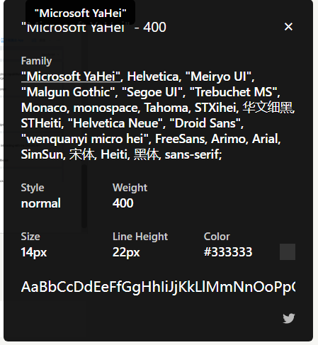 有时候想看快速查看页面上的字体字号,都得F12选中元素再查看,十分麻烦,而这款插件可快速查看页面上使用的字体信息,包括字体、行高、颜色等,安装后点击一下扩展,然后划出想查询的文字即可,使用截图如下: