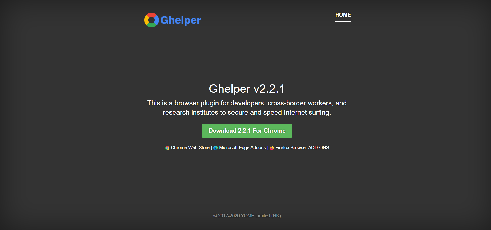 正所谓工欲善其事必先利其器,若想安装谷歌插件,首先你得能上谷歌应用商店才行,但鉴于国内环境,是不能直接访问谷歌的,所以可以先上 Ghelper 下载压缩包,解压后里面有安装说明,按文档说明操作就可以了。 官网介绍:Ghelper是专门为科研、外贸、跨境电商、海淘人员、开发人员服务的上网加速工具,chrome内核浏览器专用!可以解决chrome扩展无法自动更新的问题,同时可以访问谷歌google搜索,gmail邮箱,google+等谷歌产品。