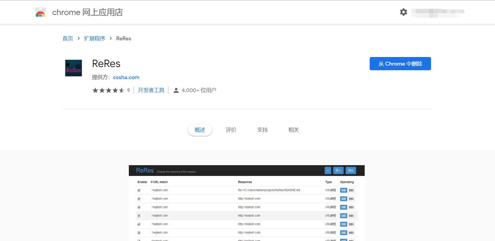 ReRes 线上调试神器,前端开发过程中,经常会有需要对远程环境调试的需求。比如,修改线上bug,开发环境不在本地等等。此时就可以通过ReRes把远程css文件或者js映射到本地的文件上,通过修改本地文件进行调试和开发。 官方介绍:可以用来更改页面请求响应的内容。通过指定规则,您可以把请求映射到其他的url,也可以映射到本机的文件或者目录。支持单个url映射,也支持目录映射。 注:安装后,需要在扩展程序管理中把勾“允许访问文件网址”勾选上。