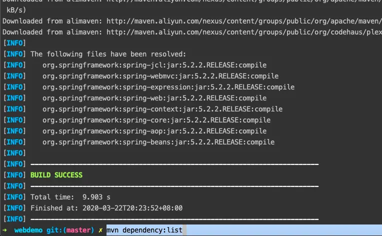 mvn dependency:list 显示所有依赖