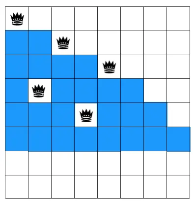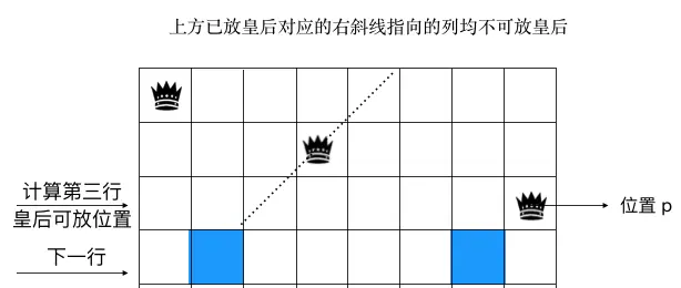 也就是说对于第三层来说第 1,3,4,5 个格子不能放皇后。如图示