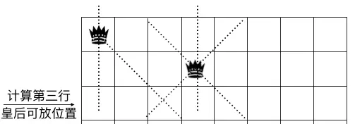 如图示,第二行放皇后的位置只能从第三个格子开始选