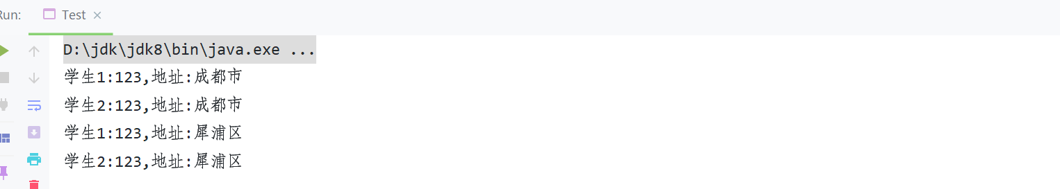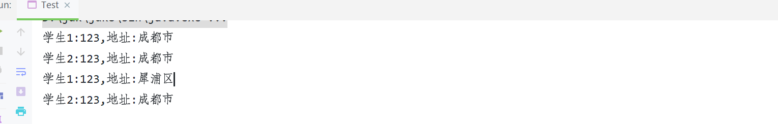 System.out.println("学生2:" + stu2.getNumber() + ",地址:" + stu2.getAddr().getAdd());