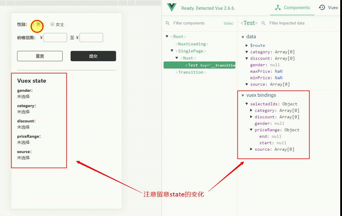 所以,当后面再次设置性别和价格然后点重置的时候,性别可以正常重置,但是价格已经无法重置了,因为 initState 已经被污染了!!