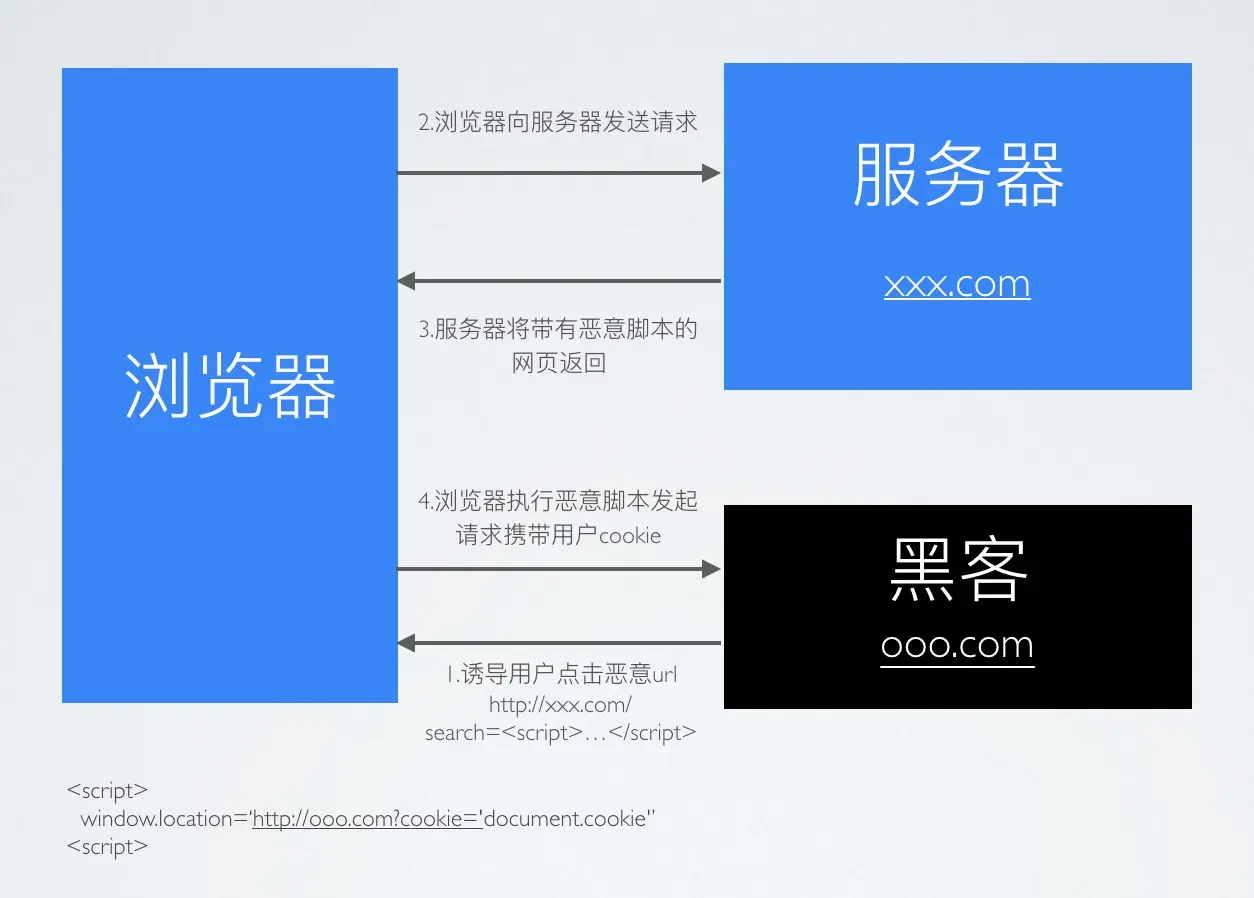 黑客在你的浏览器中插入一段恶意 JavaScript 脚本,窃取你的隐私信息、冒充你的身份进行操作。这就是 XSS 攻击(Cross-Site Scripting,跨站脚本攻击)