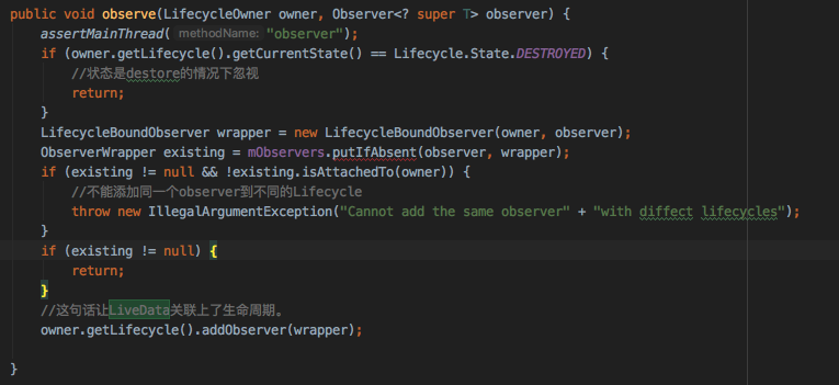 LiveData的Observe(LifecycleOwner,Observer observer)方法