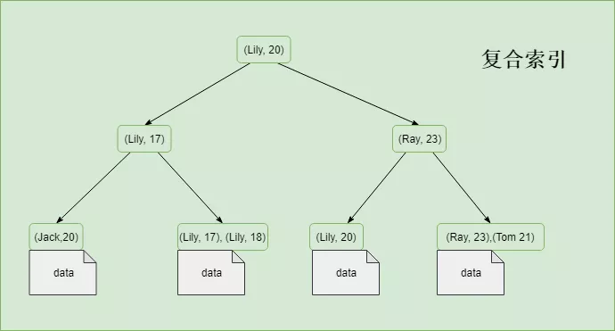 复合索引的索引的数据顺序跟字段的顺序相关,包含多个值的索引中,如果当前面字段的值重复时,将会按照其后面的值进行排序。