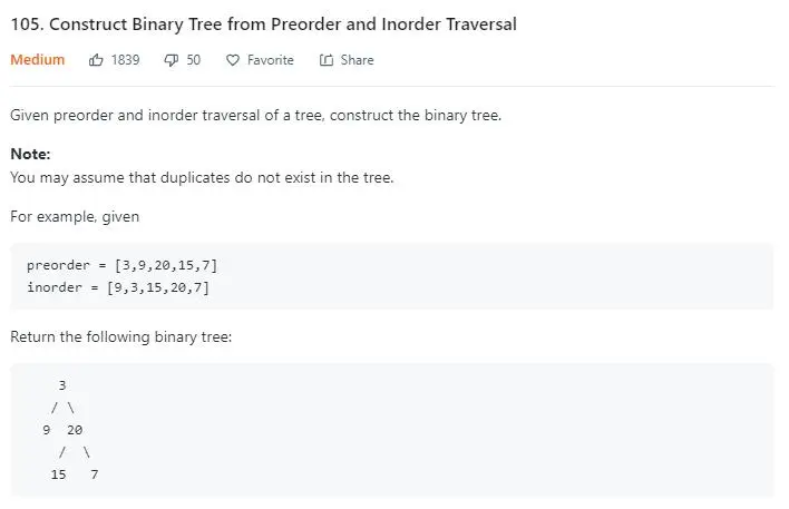 1ininorder, splitting the arrays into parts and recursing on them, just recurse on the full remaining arrays and stop when you come across the1ininorder. That's what my above solution does. Each recursive call gets told where to stop, and it tells its subcalls where to stop. It gives its own root value as stopper to its left subcall and its parent`s stopper as stopper to its right subcall.