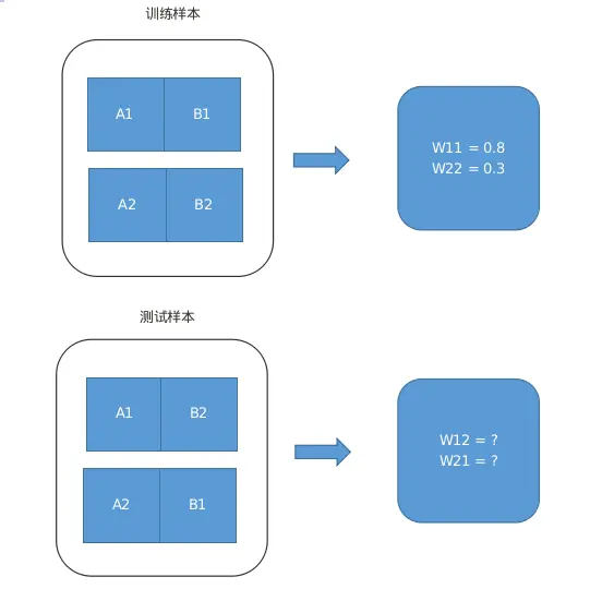 这种群体特征可以通过特征交叉来实现,比如Wide&Deep模型Wide部分的手动特征交叉,但手动交叉仅能学习到训练样本中存在的交叉特征(如两个特征A、B,分别有A1,A2, B1, B2,样本中仅存在A1_B1,A2_B2,则无法学到A1_B2和A2_B1的权重)。