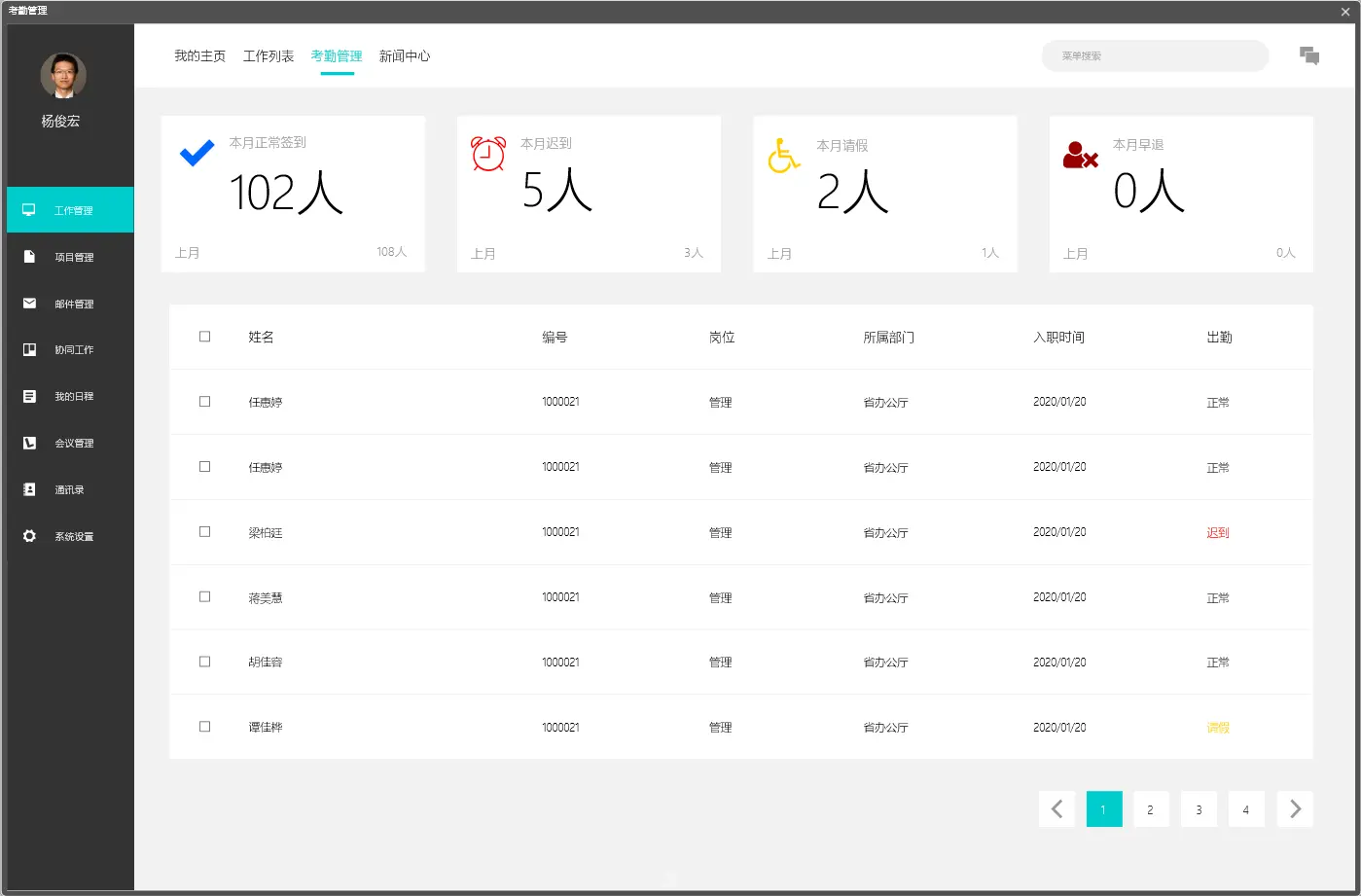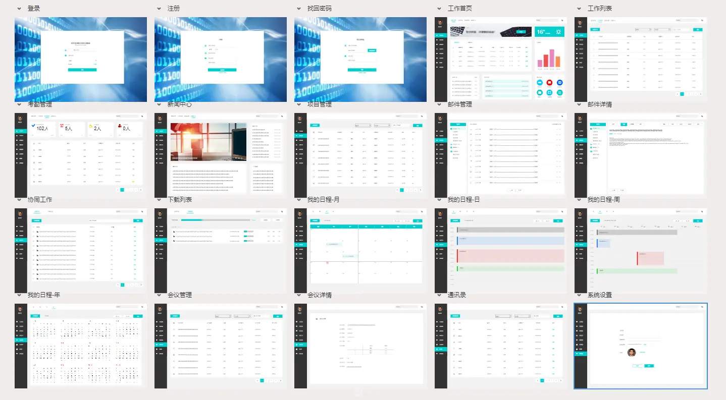 这套政务管理系统属于中高保真原型,包含登录注册、工作首页、项目管理、邮件管理、协同工作、日程、会议管理、通讯录、系统设置等20个页面。主页面采用了左右结构框架,业务逻辑条理清晰,功能全面。是一款值得参考的原型模板。