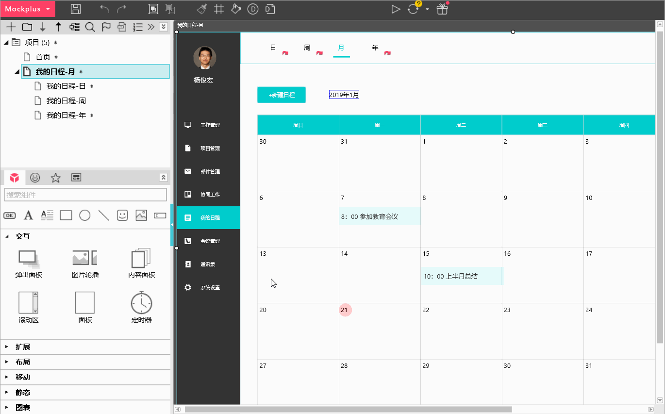 4、结合原型框架,使用摹客Mockplus等快速原型设计工具完成原型的搭建;