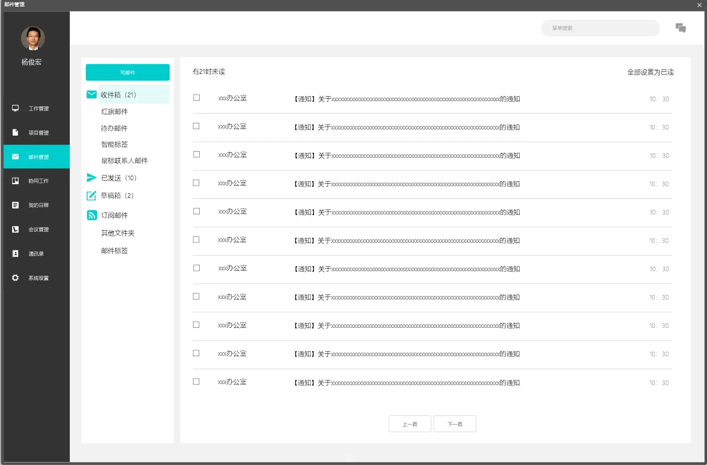 Mockplus封装了3000多个矢量图标,可以满足用户的各种需求。在此款原型中,无论是侧边整体导航,还是邮件管理等页面内部导航,都使用了Mockplus的封装图标来打造,从而使界面设计更直观、细腻。
