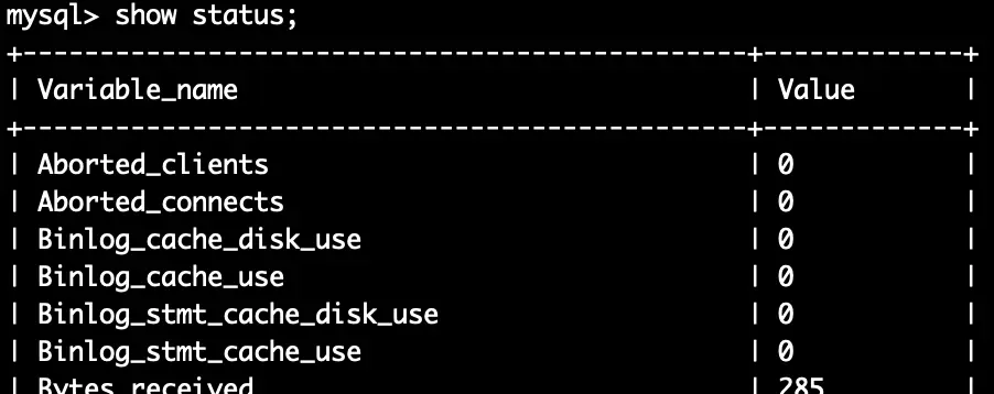 | Uptime_since_flush_status | Global | 最近一次使用FLUSH STATUS 的时间(以秒为单位) |