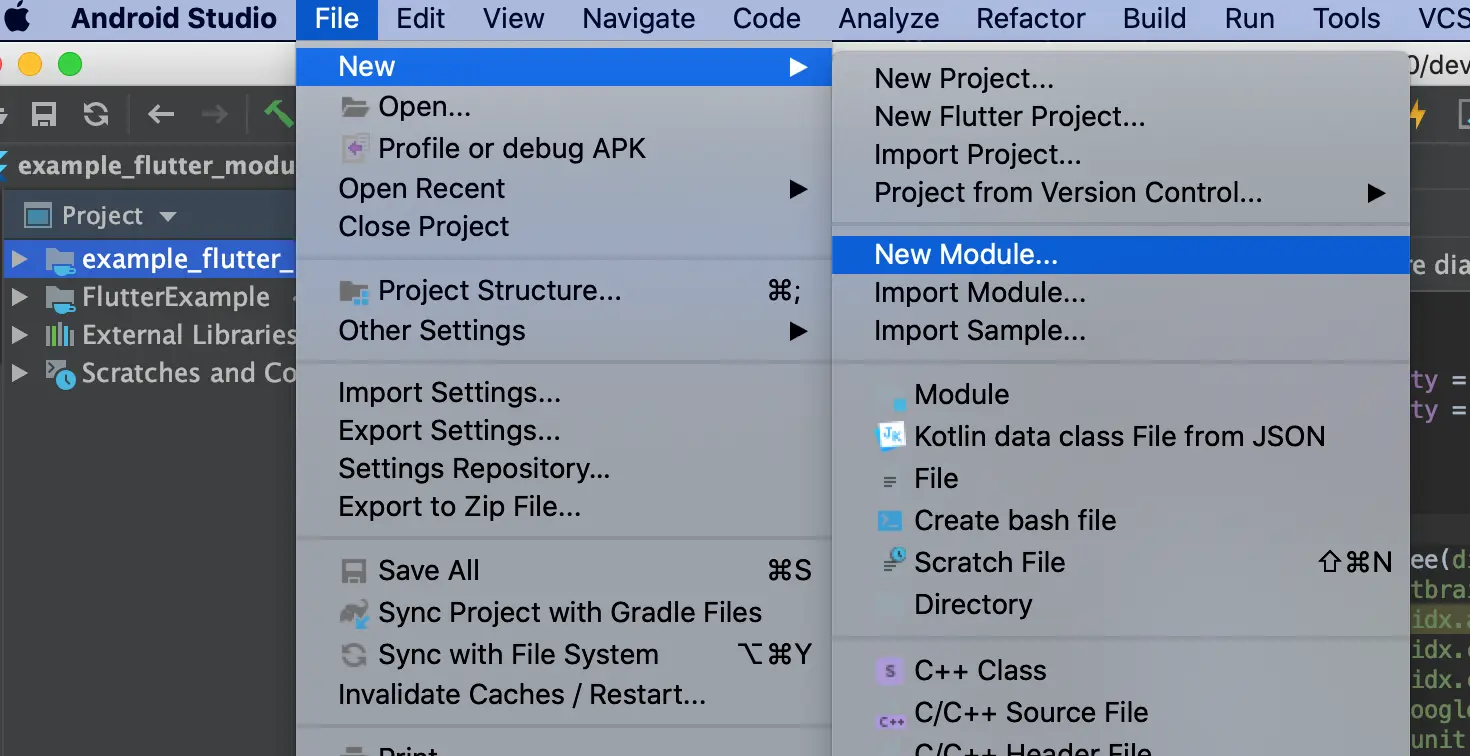 在已有Android工程中集成flutter,可以使用AndroidStudio的new Flutter Module实现,方便快捷。