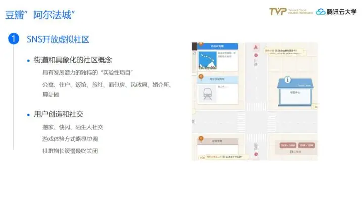 但就是这么一款游戏,它带来了一些新的概念,把街道做的具象化。玩家可以进入到社区里面去,入住的街道都是具象化的,玩家可以在里面开小店,开面包房,还有民政局、婚介所......它是一个完完全全虚拟化的镜像社区,模拟了现实世界。这也是一个开放的社区,用户可以自由进行创作。
