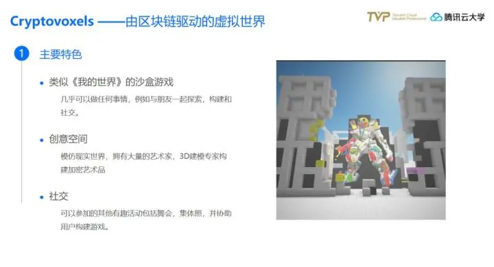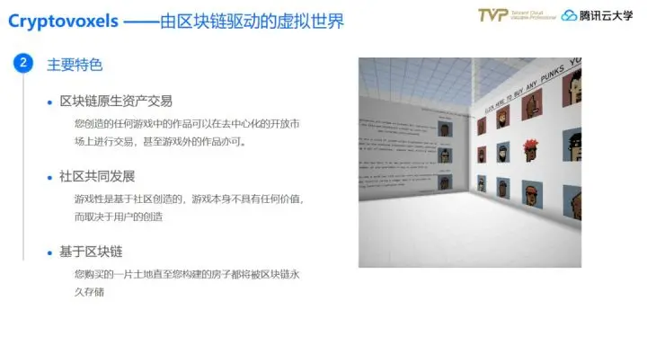 当玩家去创造一个作品,做一个很好玩的东西的时候,其实就是在跟社区共同发展。Cryptovoxel这款游戏其实就是基于社区创造的,它本身不具有特别多的游戏性,基本都是通过用户去驱动的,并渐渐形成了社区的共识。