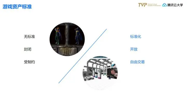 将A、B游戏运营商的游戏资产,依照标准化协议了,登记到区块链上,形成标准化资产。如果两家公司的游戏资产都是标准化的,它们之间的NFT是否就能够进行交易呢?所以这可能也是未来的一个发展方向。