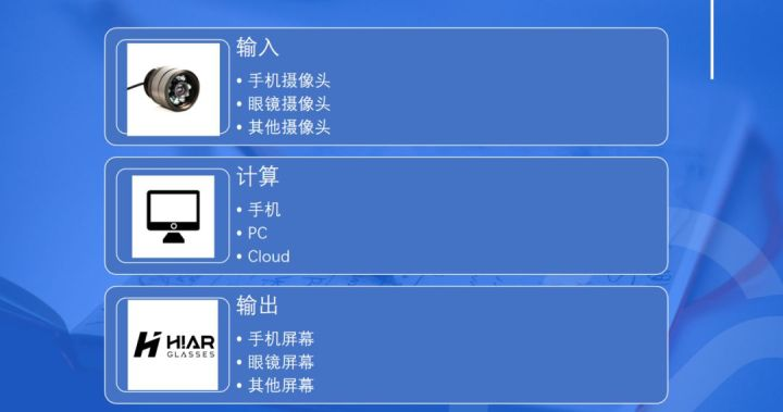 在输入的部分,可以用手机摄像头、AR眼镜摄像头、其他PC摄像头等,以及非视觉的采集工具,如红外摄像头、深度摄像头、超声波摄像头......
