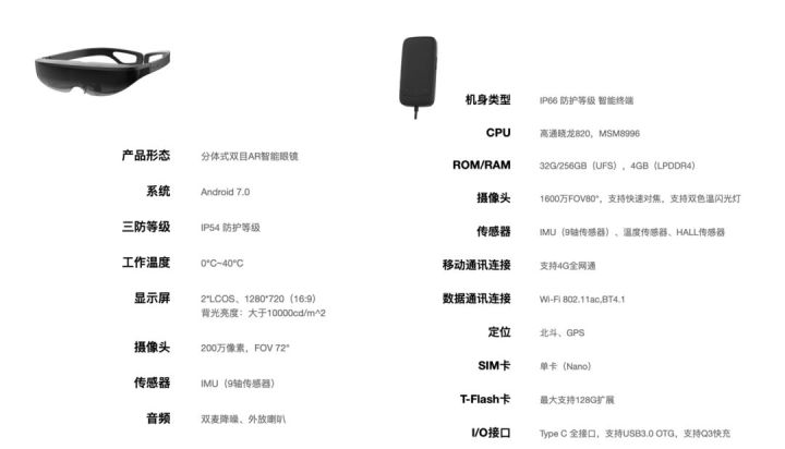 该眼镜用了安卓7.0系统。综合其CPU、系统以及其他参数,可以这样理解:AR眼镜几乎就是一台安卓手机。只不过它对输入输出部分,做了一些分解。还有一个重要的点是,眼镜是横屏显示,而且具备3D显示的能力。